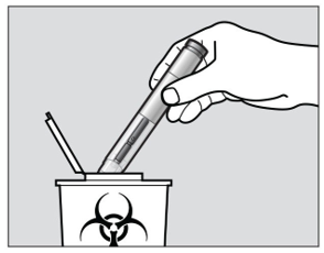 Dersom en annen person gir injeksjonen må denne personen også være forsiktig når den ferdigfylte pennen trekkes ut og kastes, for å unngå uhell med å skade seg på nålestikk og overføring av infeksjon.