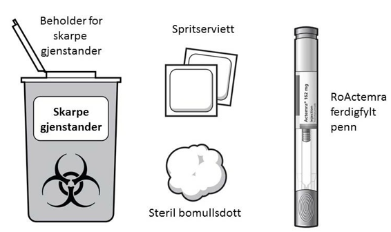 Nødvendig utstyr for en injeksjon med RoActemra ferdigfylt penn (Se figur B):