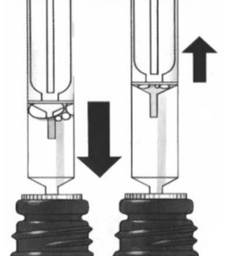 1 ml sprøyten brukes til å måle doser mindre eller lik 1 ml. Hvert merke på sprøyten er 0,05 ml. Dette tilsvarer 5 mg ciklosporin.
