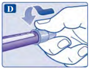 Ikke sett en ny nål på pennen før du er klar til å ta injeksjonen.
