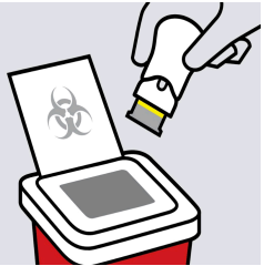 Legg den brukte ferdigfylte pennen i en kanylebøtte rett etter bruk.