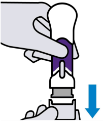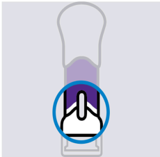 Ved injeksjon, press håndtaket helt ned til den lilla hoveddelen ikke er synlig, for å injisere hele dosen. IKKE LØFT OPP DEN FERDIGFYLTE PENNEN under injeksjon! Hvis du gjør det, låses den ferdigfylte pennen og du får ikke tatt hele dosen.