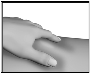 2. Klem forsiktig huden i det valgte injeksjonsområdet sammen mellom tommel og pekefinger.