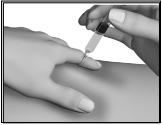 3. Hold sprøyten som en blyant eller en pil, og før nålen inn i hudfolden slik at den danner en vinkel på 45º til 90º med hudoverflaten.