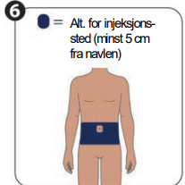 Alternativer for injeksjonssted (minst 5 cm fra navlen)