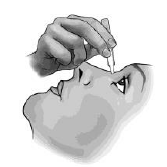 10. Trykk forsiktig på beholderen og la det falle ned én dråpe i rommet mellom øyet og det nedre øyelokket.