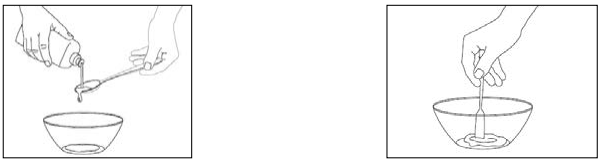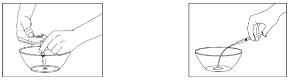 Hvis det er noe innhold igjen i den andre bollen, skyll bollen med litt vann og la barnet drikke resten av blandingen. For barn som ikke kan drikke fra en bolle, bruk en skje eller flaske for å gi barnet resten av miksturen.