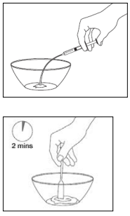 Hvis det er noe innhold igjen i den andre bollen, skyll bollen med litt vann og la barnet drikke resten av blandingen. For barn som ikke kan drikke fra en bolle, bruk en skje eller flaske for å gi barnet resten av miksturen.