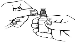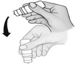 10. Rist flasken nedover en gang får å fjerne rester av oppløsning fra flasketuppen. Ikke berør eller tørk tuppen.