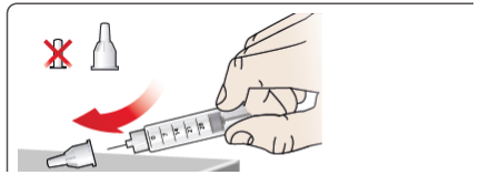 Legemidlet skal ikke overføres til en sprøyte.