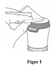 Etter bruk rengjøres applikatoren med et papirtørk. Se figur I.