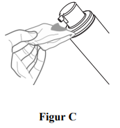 Klargjør pumpen ved å trykke pumpehodet helt ned over et papirtørk. Gjenta dette inntil det kommer ut gel. Se figur C.