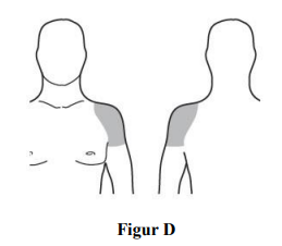 Velg et område med ren, tørr og normal, frisk hud på overarm eller skulder, som vil dekkes av en t- skjorte. Se figur D.