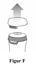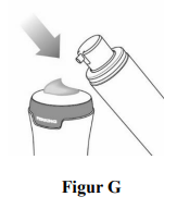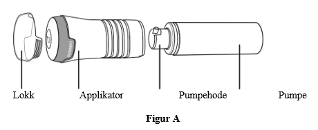 Husk å sette lokket på applikatoren igjen og applikatoren tilbake over pumpen. Se figur J.