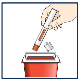 Kast den brukte ferdigfylte pennen og hetten i en sikker beholder for skarpt avfall / nålebøtte rett etter bruk. Annet brukt utstyr kan kastes i husholdningsavfallet.