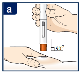 Plasser den oransje nålebeskytteren flatt mot huden (90 graders vinkel).