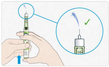 Ikke bruk pennen dersom det fortsatt ikke kommer insulin ut av kanylespissen. Bruk en ny penn.