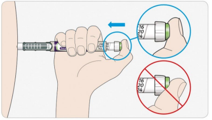 Dersom du er blind eller har dårlig syn skal du ikke bruke den ferdigfylte pennen uten hjelp. Dette er fordi du ikke kan lese doseringsvinduet på pennen. Få hjelp fra en person med godt syn og som er trent i å bruke pennen.