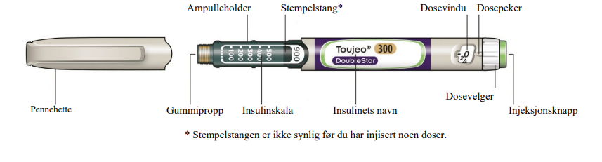 Toujeo DoubleStar inneholder 300 enheter/ml insulin glargin i en 3 ml ferdigfylt penn til engangsbruk
