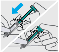 Hold i sprøytens hoveddel og trekk nålebeskyttelsen rett av.