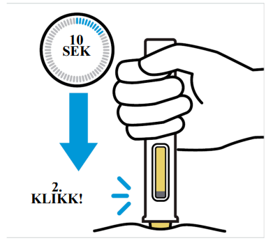 Fortsett å holde den ferdigfylte pennen fast mot huden i ca. 10 sekunder til du hører det andre klikket