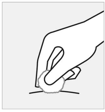 Ikke berør, vift eller blås på injeksjonsstedet etter at du har rengjort det.