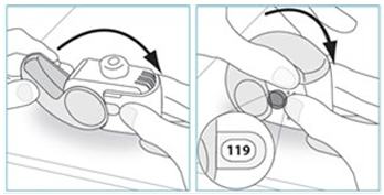Utfør tre trinn for å ta en dose fra inhalatoren: Åpne, inhaler, lukk.