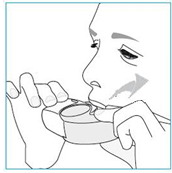 Du skal inhalere legemidlet gjennom munnen din, og dette fører legemidlet rett inn i lungene.