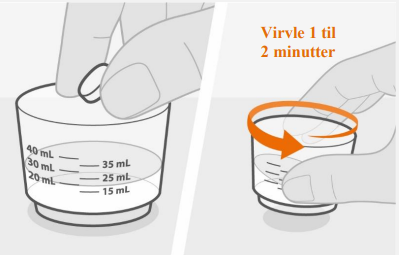 Du må gi legemiddeldosen innen 30 minutter etter at du har tilberedt dosen. Dersom det har gått mer enn 30 minutter, skyller du ut dosen i begeret ved hjelp av vann og tilbereder en ny dose av legemidlet.