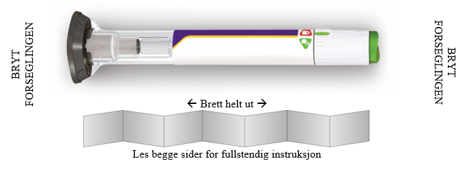 Pennen inneholder deler i glass. Disse skal håndteres forsiktig. Hvis du mister den på en hard overflate, skal du ikke bruke den. Bruk en ny penn til injeksjonen.