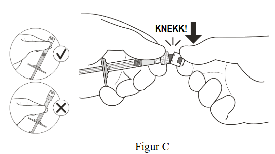 2. Hold sprøyten i den hvite kragen; knekk av sprøytehetten (se Figur C).