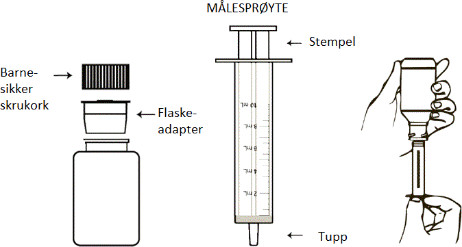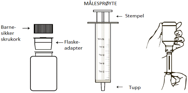 Tøm miksturen rett i munnen og svelg. Ikke bland miksturen med annen væske.