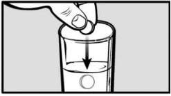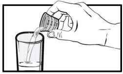 Instruksjoner for pasienter eller omsorgspersoner som klargjør suspensjonen ved bruk av et lite glass: