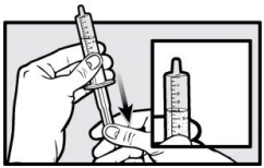 15. Hold målesprøyten slik at spissen peker oppover. Press stempelet sakte inn for å fjerne det meste av luften.