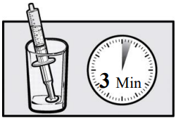7. Plasser den fylte målesprøyten i et rent, tomt glass med spissen vendt oppover. Vent i 3 minutter - til de dispergerbare tablettene er fullstendig oppløst.