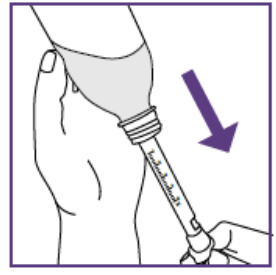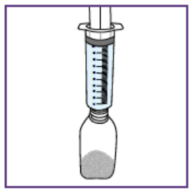 Etter å ha satt dosen kan den blå sprøyten brukes til alle administreringer fra flasken med suspensjon som ble klargjort i trinn 1.