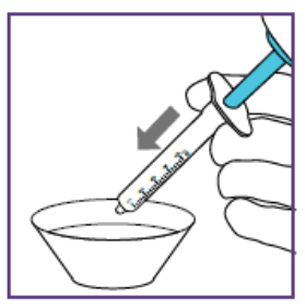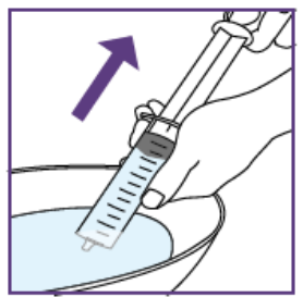 2. Trekke opp den forskrevne dosen (med hver nye blå sprøyte)For å unngå overdosering eller underdosering er nøyaktig dose suspensjon nødvendig.