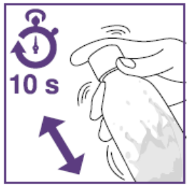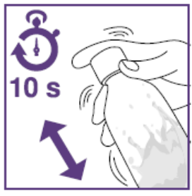 Rist suspensjonen i minst 10 sekunder før hver administrering.