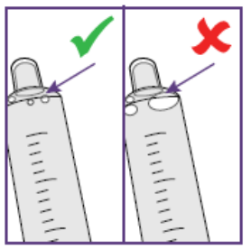 ➔Eventuelle luftbobler beveger seg til toppen når du holder sprøyten vendt oppover.