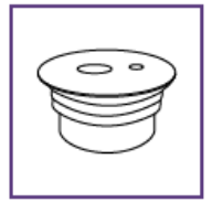 Den blå sprøyten har en rød knapp for justering av volumet. Denne knappen er i utgangspunktet dekket av en avtakbar etikett. Når du trykker på den røde knappen, blir volumet på sprøyten stilt inn og dette kan bare gjøres én gang