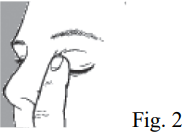 5. Mens du lukker det berørte øyet, trykker du med en finger mot øyekroken til det lukkede øyet (på siden der øyet møter nesen) som vist i figur 2, og holder i 2 minutter. Dette bidrar til å forhindre at Xatabloc tas opp i resten av kroppen din.