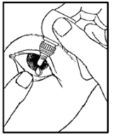 Plasser tuppen av flasken nær, men uten å berøre øyet.
