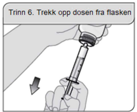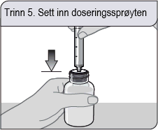 Hvis du ser luftbobler i doseringssprøyten, skyver du stempelet helt inn for å tømme oppløsningen tilbake i flasken. Deretter trekker du opp den foreskrevne dosen med oppløsning.