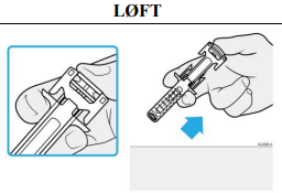 Viktig: Ta først av kanylehetten like før du skal injisere (innen 5 minutter), da dette ellers kan føre til at legemidlet tørker ut.