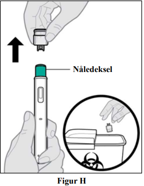 11. Fjern den ferdigfylte pennen fra injeksjonsstedet og ta hånd om injeksjonsstedet