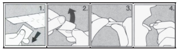 Hold blisterbrettet på kantene og riv av en blisterlomme fra resten av brettet ved å bryte perforeringen forsiktig.
